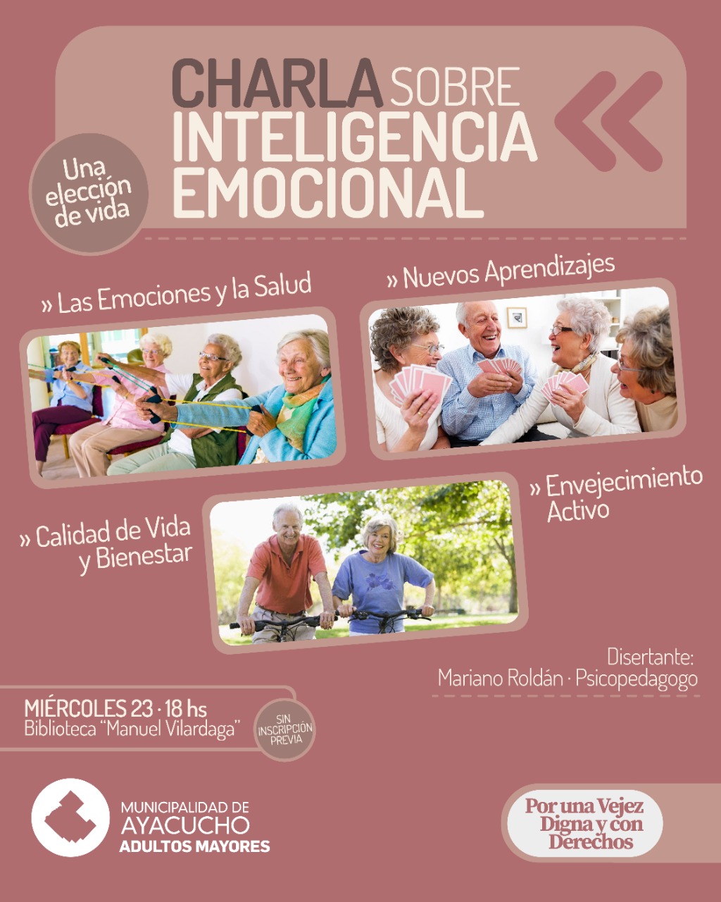 Desde el área de Adultos Mayores invitan a toda la comunidad a una charla sobre “Inteligencia emocional”, que se concretará el venidero miércoles 23 de noviembre a las 18 horas en la Biblioteca Manuel Vilardaga, con acceso libre y gratuito, a cargo del Psicopedagogo Mariano Roldán.