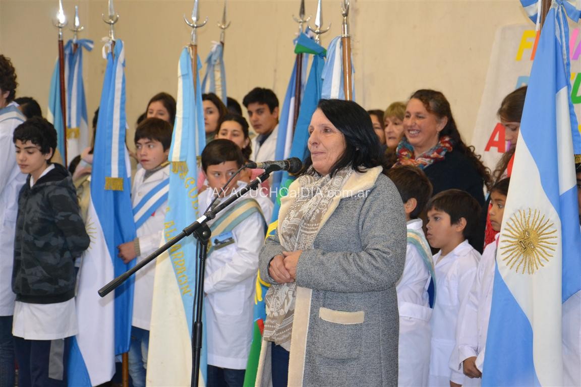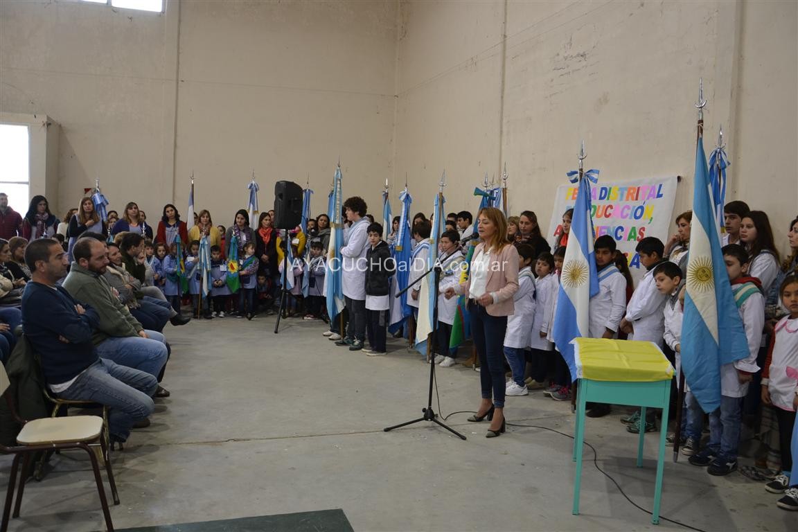 Tras lo que fue el ingreso de las banderas de ceremonias que acudieron en un número que supera todo registro de actos anteriores, la Jefa de Área del establecimiento anfitrión, Prof. Luján Lemble, señaló que “esta es una fiesta del conocimiento y viendo el ingreso de las banderas, creo que todos los docentes que estamos acá debemos sentir una profunda emoción por el trabajo de todos los chicos con sus maestros. Esto es posible por el compromiso de todos. Debe ser una jornada para no olvidar y sabemos bien quiénes somos mamás como docentes, que lo aprendido en una Feria de Ciencias no se olvida más”.