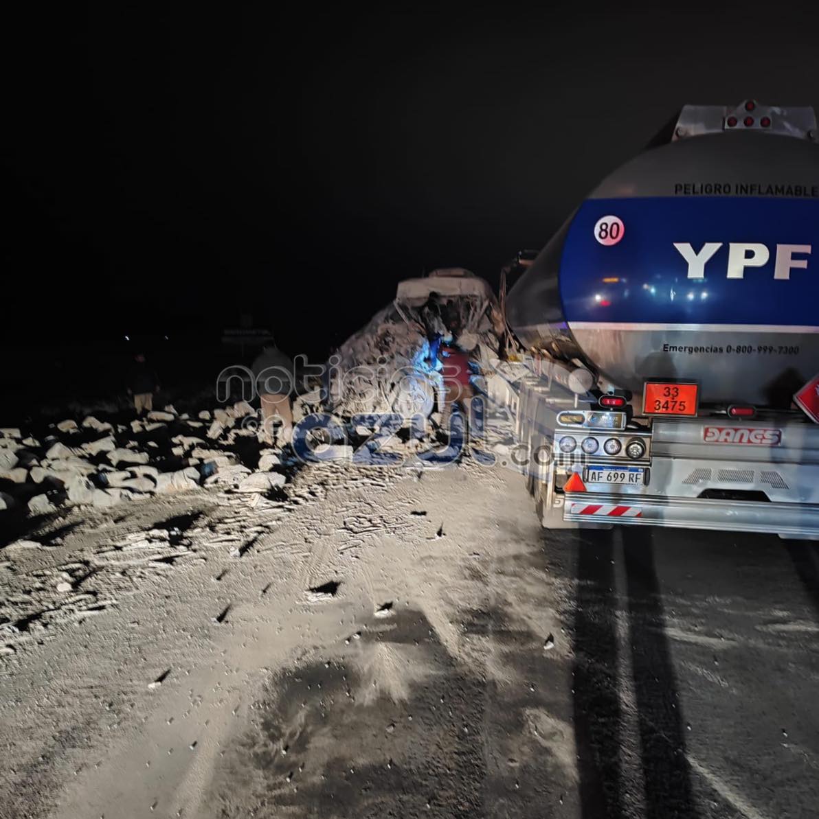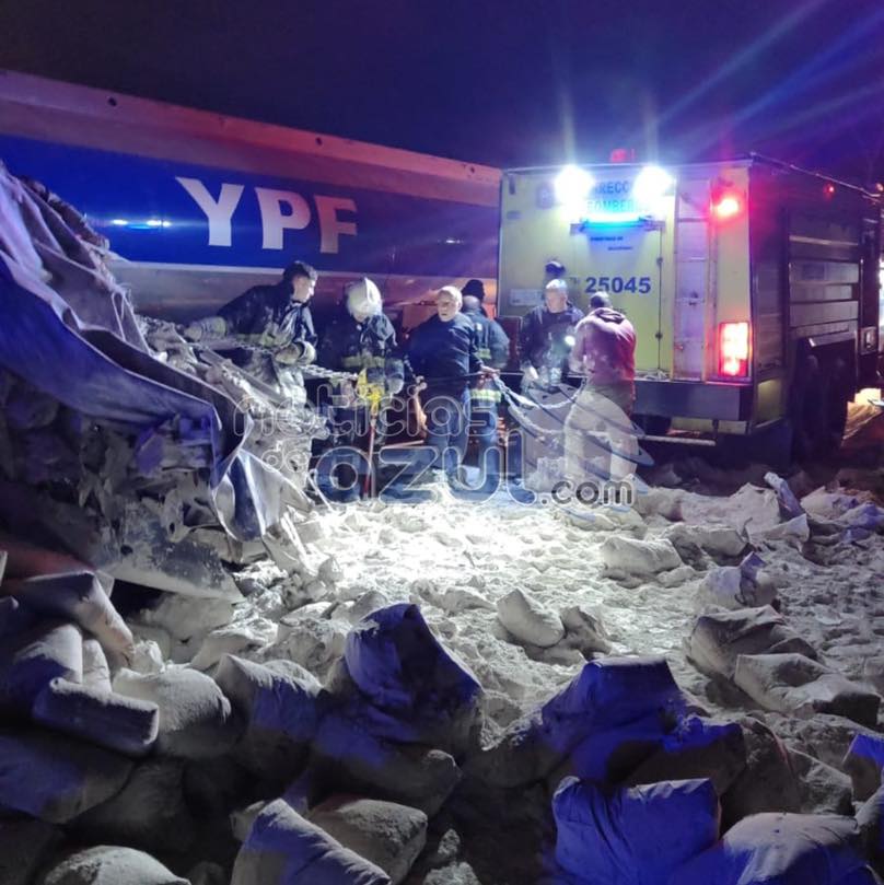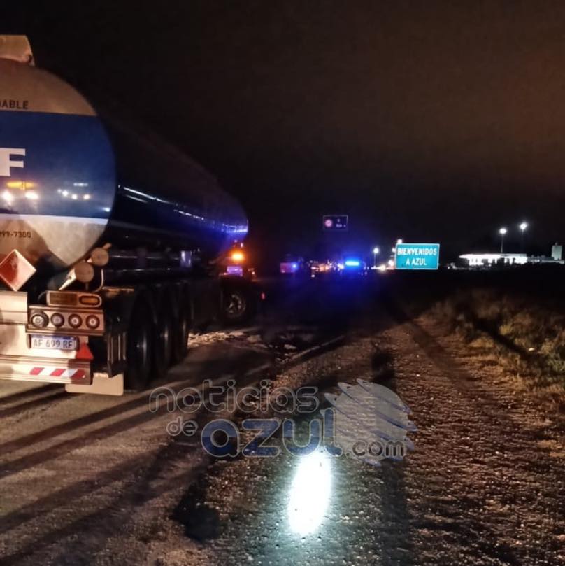 Este martes por la noche se produjo un fortísimo choque entre dos camiones en Ruta 3, en cercanías a la localidad de Azul. Allí se vieron involucrados un camión cisterna de la empresa YPF conducido por Silvia Centeno de 28 años, oriunda de Bahía Blanca, y un camión Ford Cargo, que transportaba cemento y que era conducido por Julián Cuello, de 50 años, de San Miguel del Monte.