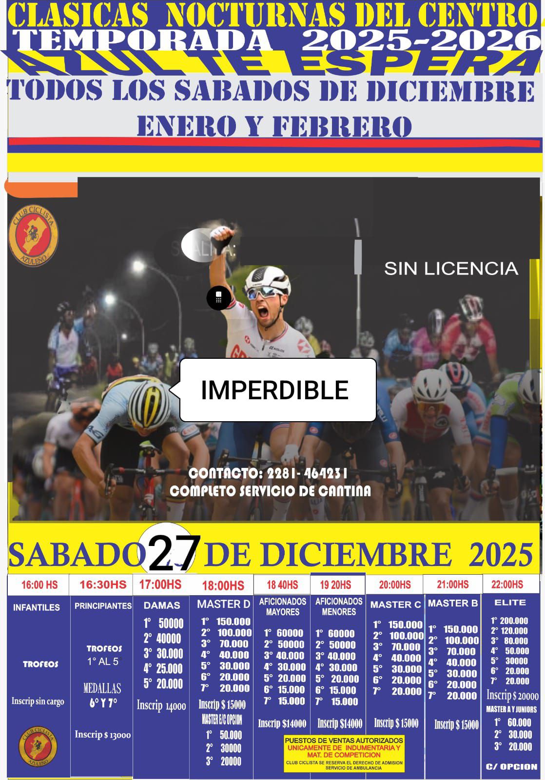 Ciclismo – Este sábado 27 la última de las clásicas del centro, en la ciudad de Azul 26 diciembre, 2025 Pablo Tusq Deportes, deportes DIA 0 Los invitamos a despedir el año este sábado 27 en las clásicas del centro en la ciudad de Azul, con un completo servicio de cantina. X
