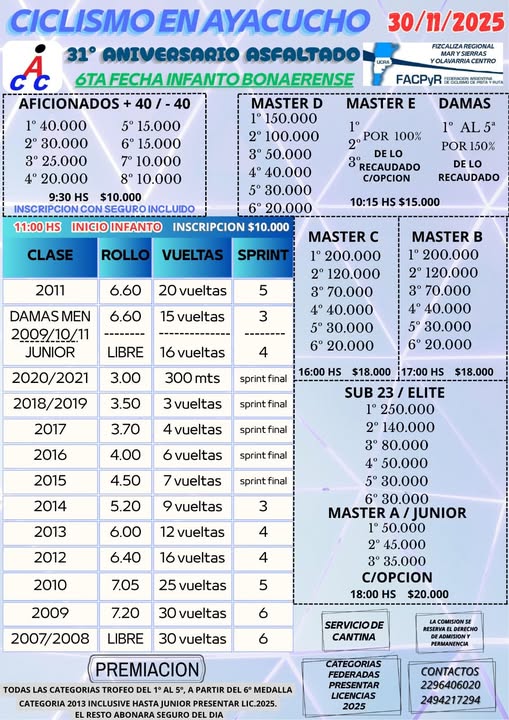 Ciclismo – Se disputa el campeonato Infanto Bonaerense 2025 / Este domingo 30 de Noviembre en Ayacucho 10 noviembre, 2025 Pablo Tusq Deportes, deportes DIA, destacados 0 Ciclistas Infantiles, juveniles Bonaerenses este domingo en Ayacucho. Los esperamos a todos. X