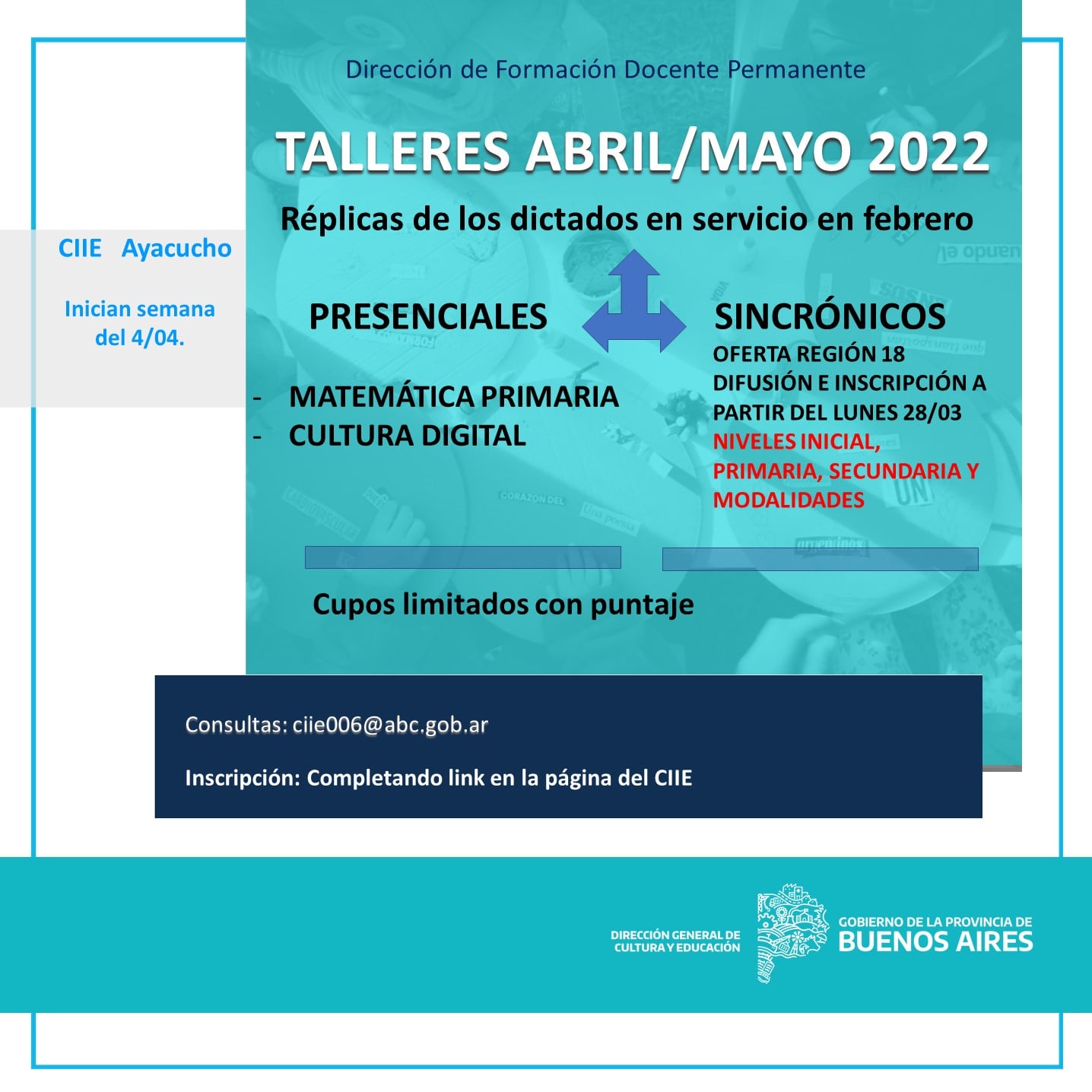Con puntaje y con cupos limitados. Consultas al mail del ciie: ciie006@abc.gob.ar