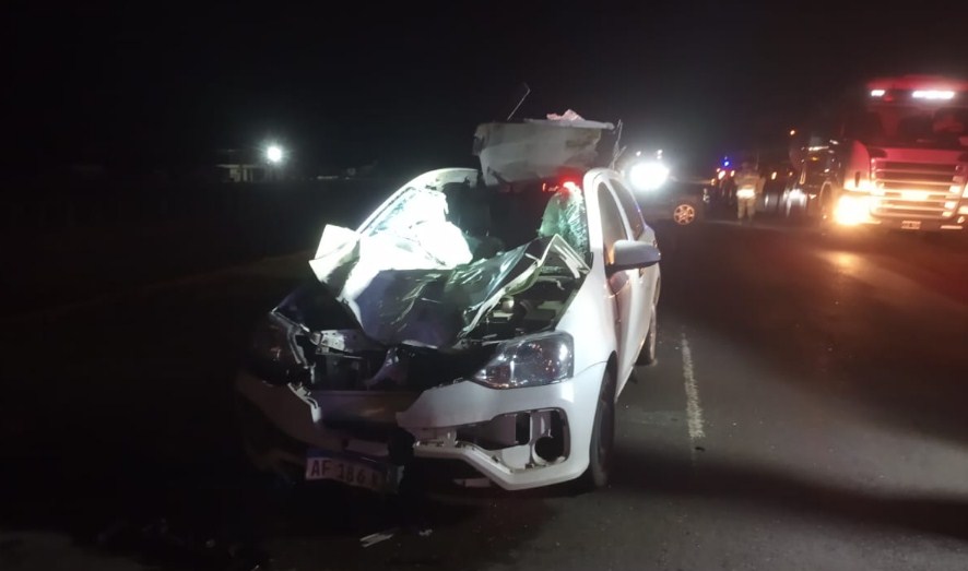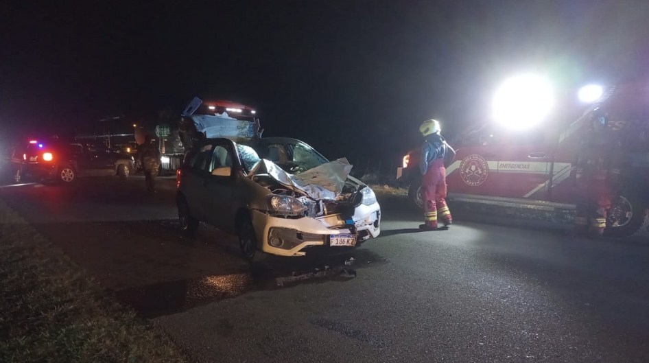 El hecho se registró a última hora de este domingo, cuando el conductor de un vehículo marca Toyota Etios no pudo evitar colisionar contra un animal vacuno que en medio de la oscuridad cruzó imprevistamente la ruta.