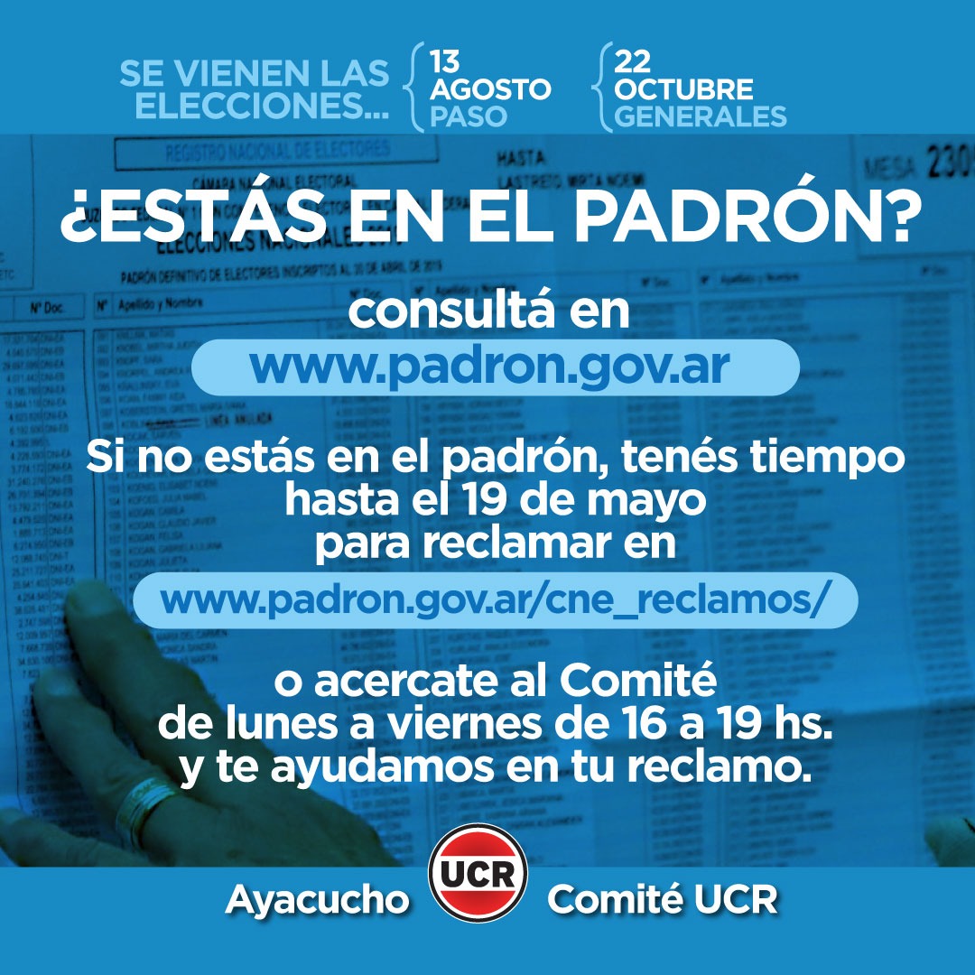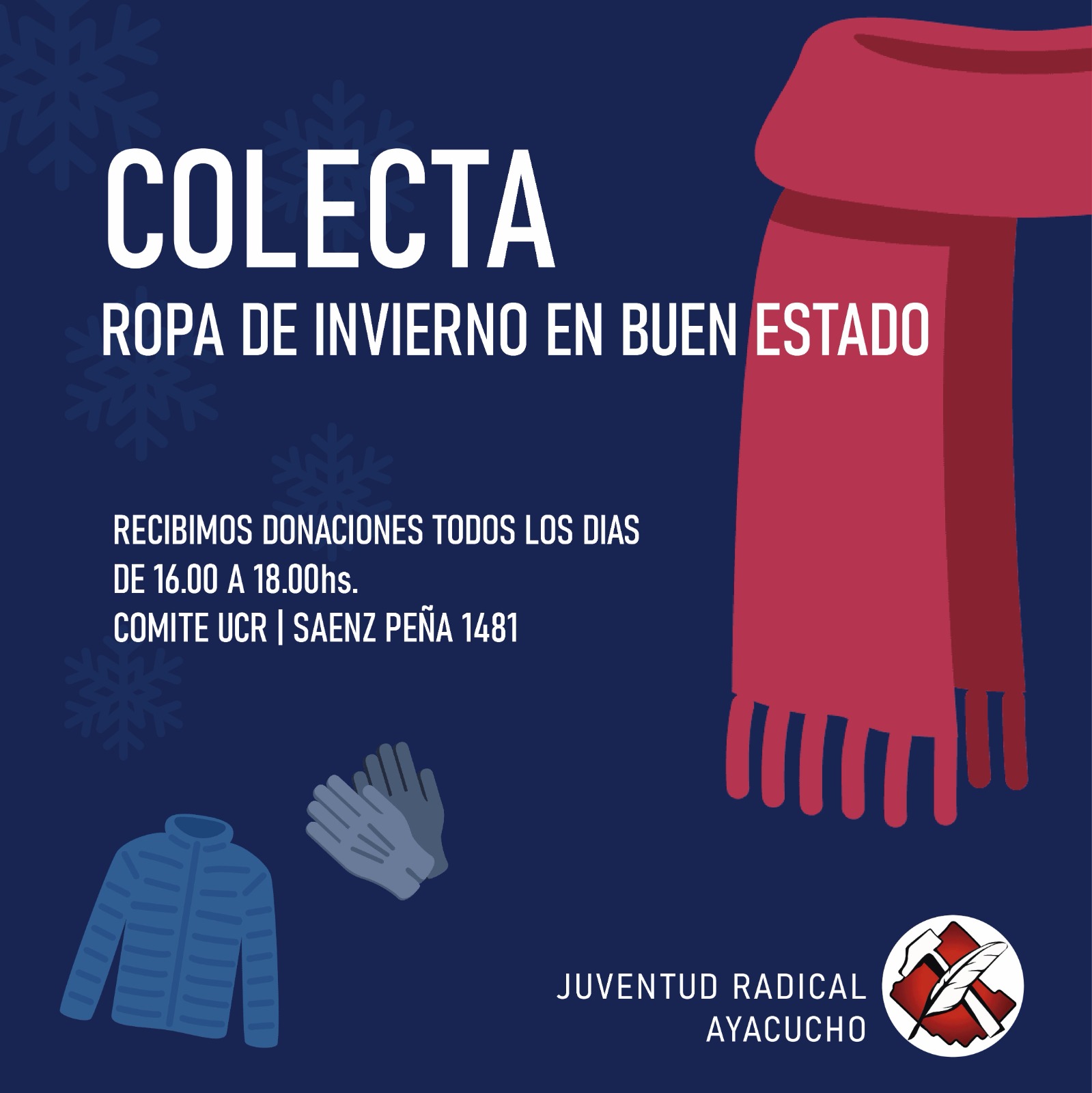 Colecta de ropa y Padrón disponible en el Comité de la UCR 17 mayo, 2023 Pablo Tusq destacados, Locales, locales DIA 0 Colecta de la Juventud Radical Podes consultar el padrón para las próximas elecciones X