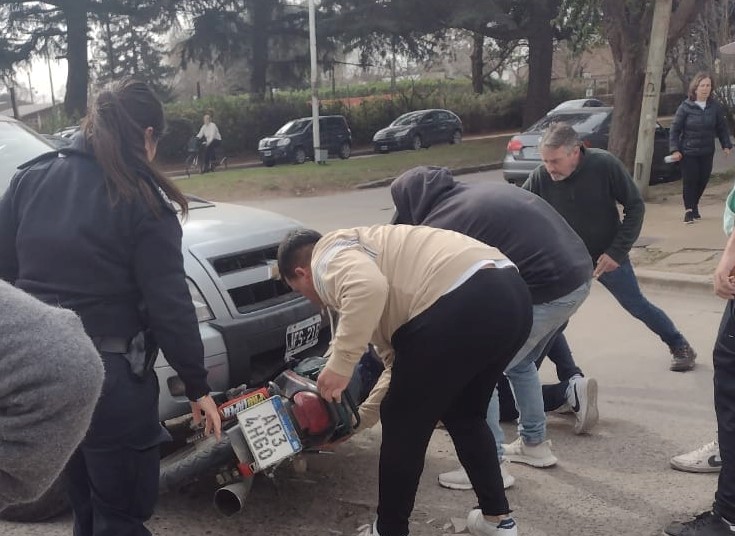 Este martes en horas de la tarde, un joven motociclista tuvo que ser trasladado al Hospital Municipal en una ambulancia del SAME, luego de haber sido embestido por una camioneta Chevrolet S10. El hecho ocurrió en la esquina de Avenida Miguens y Moreno, donde como se observa en las imágenes del artículo, la camioneta terminó por encima de la moto por lo que vecinos que acudieron al lugar, lograron quitar la moto de allí levantando la camioneta.