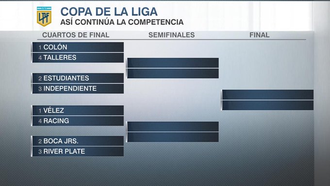 Los cuartos de final de la Copa LPF serán a partido único y la localía será para el equipo que haya clasificado en mejor posición en la fase de grupos. A partir de semifinales, los duelos serán en cancha neutral: una posibilidad es que las semifinales sean en San Juan y la final en el Estadio Único Madre de Ciudades, de Santiago del Estero.