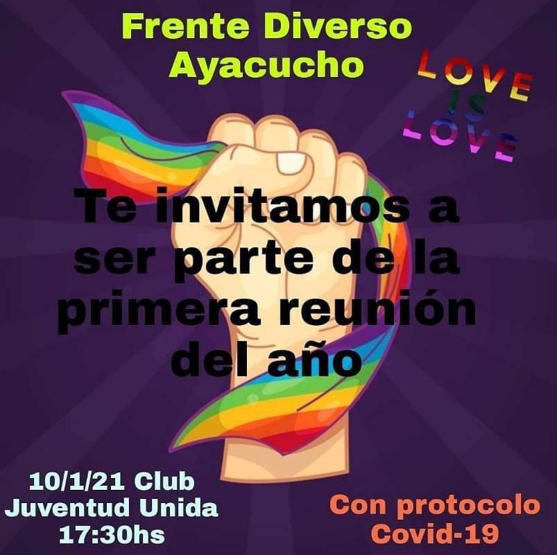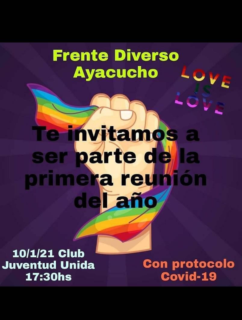 Desde el Frente Diverso Ayacucho invitan a la comunidad a la primera reunión del año, la que se llevará a cabo este domingo 10 de Enero a las 17,30 horas en Juventud Unida, y donde recalcan que se efectuará bajo protocolos de Covid 19.