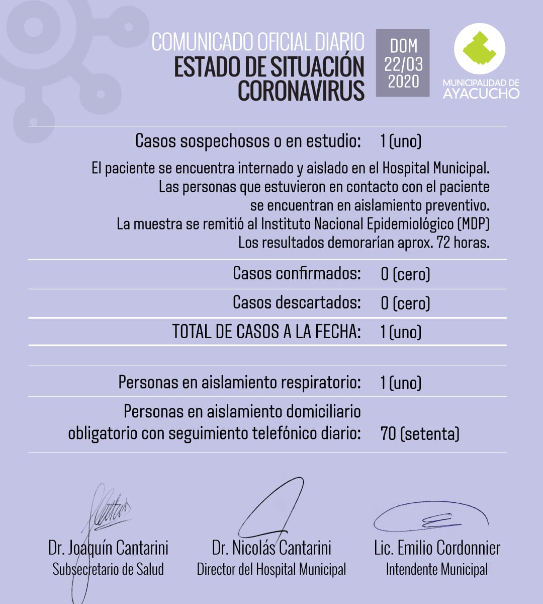 ACTUALIZACIÓN – IMPUTADOS POR VIOLAR EL AISLAMIENTO Y SECUESTROS VEHICULARES – La Municipalidad de Ayacucho informa que hasta la fecha, 22 de marzo de 2020 a las 20.30 hs, se iniciaron en nuestra ciudad un total de 11 causas penales por violación a lo dispuesto en el Artículo N° 2 del Decreto Presidencial N° 297/2020 sobre aislamiento social preventivo y obligatorio.