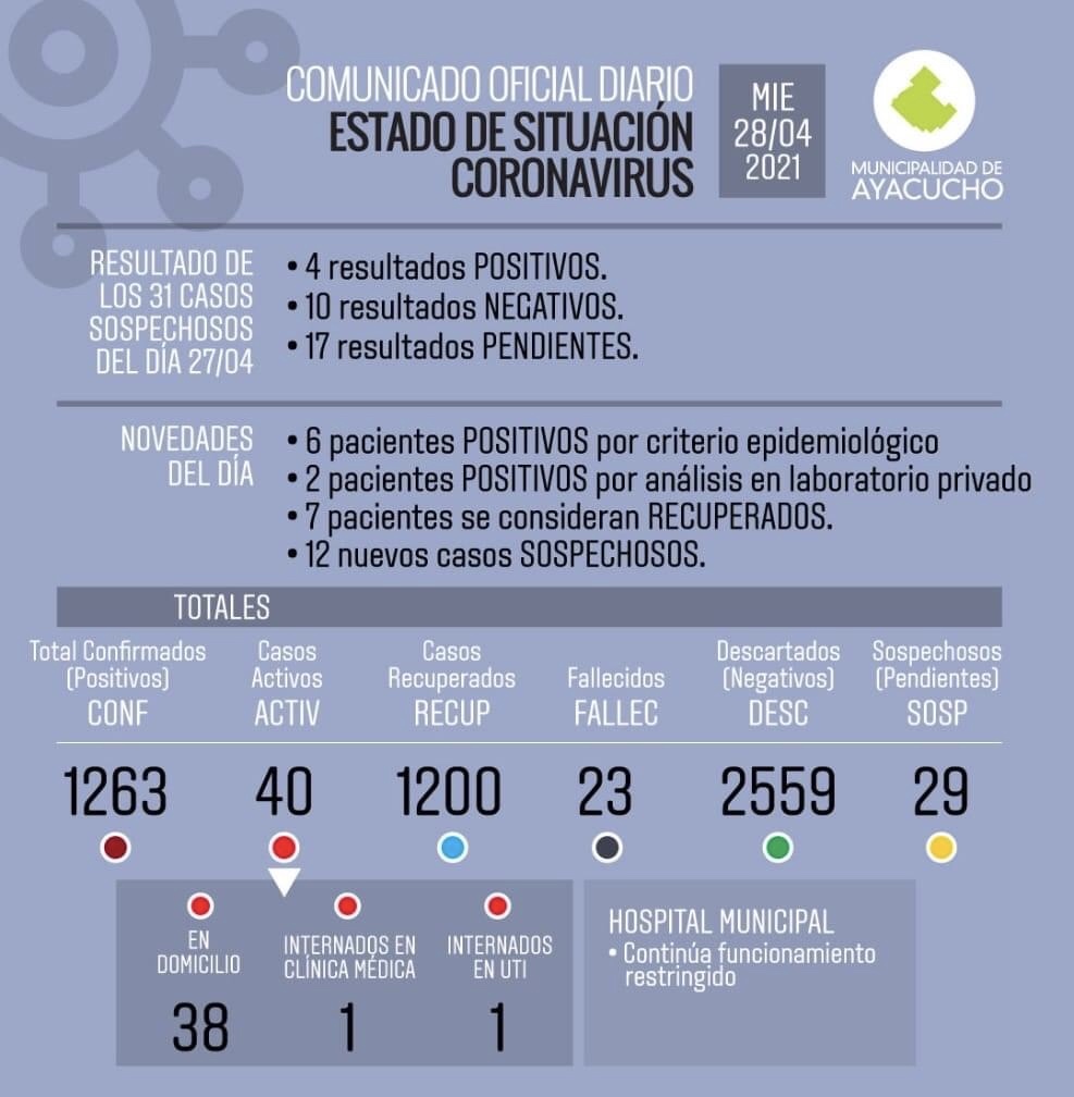 Y dado que también se registraron 7 recuperados, los activos en nuestra ciudad son 40.