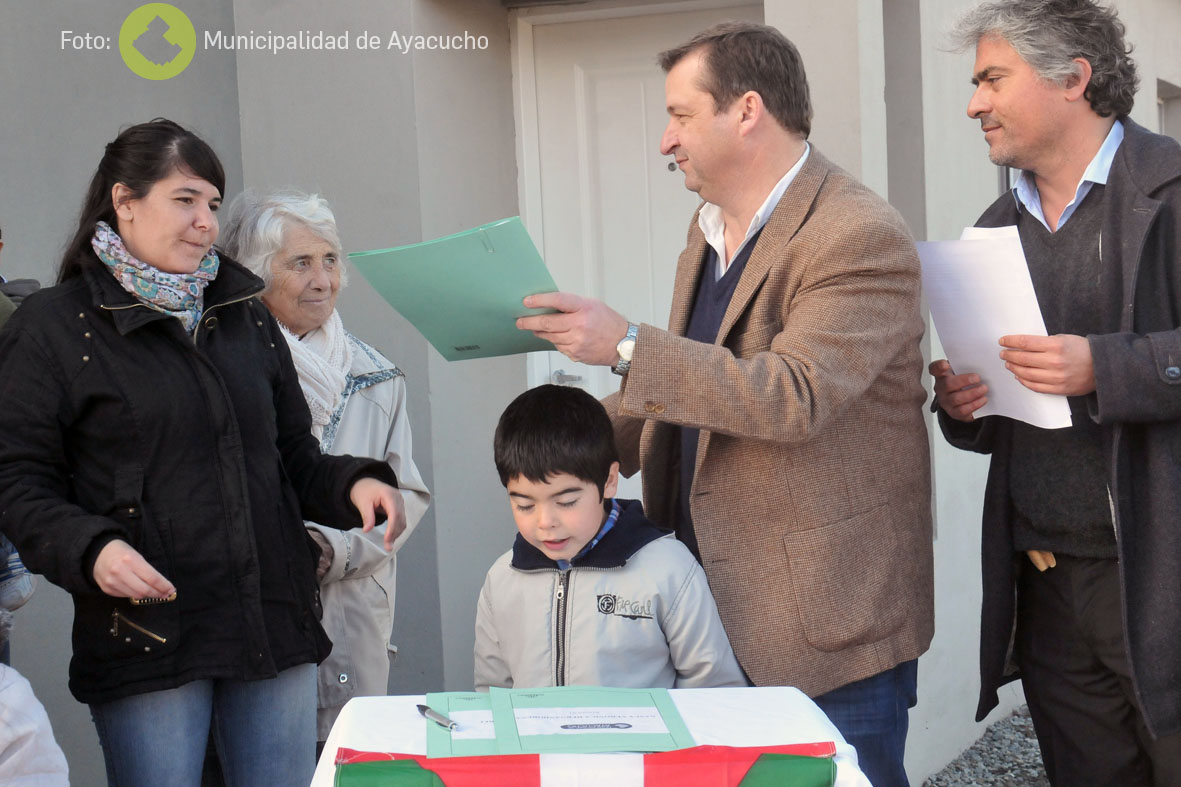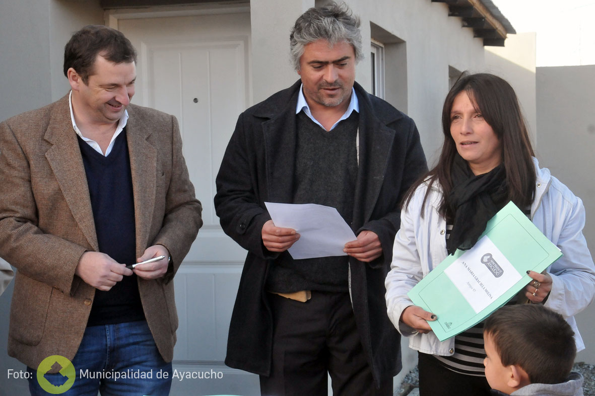 Cuatro familias más en Ayacucho tienen sus viviendas propias. Tras una obra llevada a cabo por el municipio que aportó la mano de obra y el Centro Vasco “Euskal Odola” que puso el dinero para los materiales con fondos provenientes del País Vasco, este Viernes cerca del mediodía se entregaron las 4 casas a estrenar a familias de escasos recursos, construcciones que se encuentran en Arroyo y Martín Fierro.