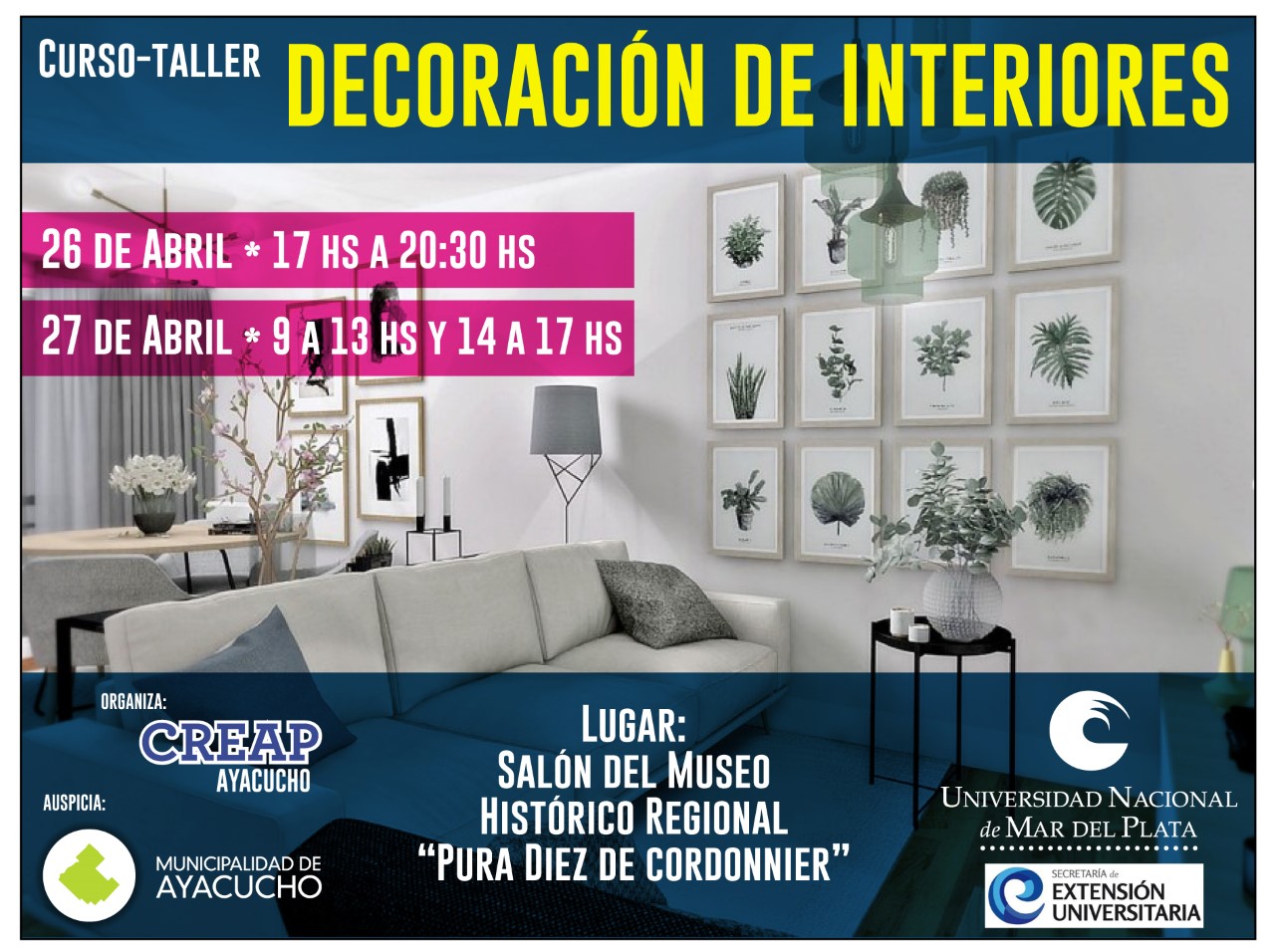 Este fin de semana dará inicio el curso-taller intensivo de diseño de interiores, que promociona el Centro de Estudios de la Municipalidad de Ayacucho en conjunto con la Secretaría de Extensión de la Universidad Nacional de Mar del Plata.