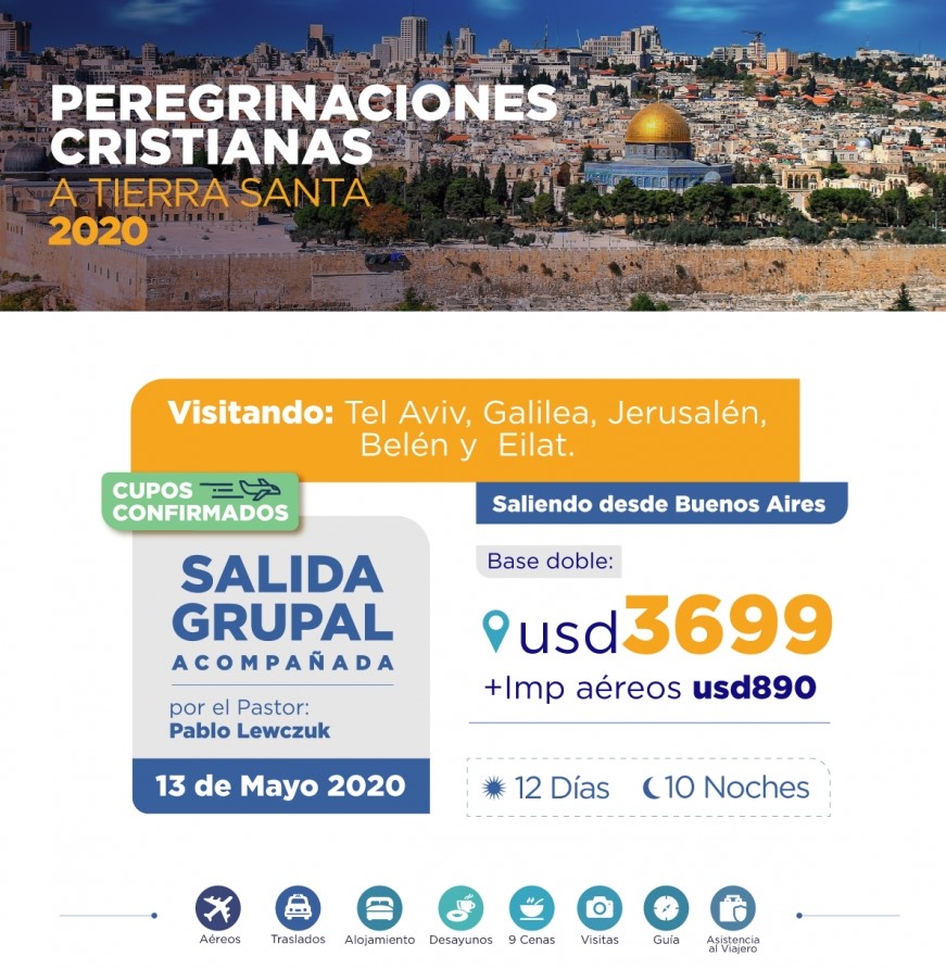Además, también te llevamos a Tierra Santa con peregrinaciones cristinanas inolvidables. Salida grupal el 13 de Mayo de 2020.