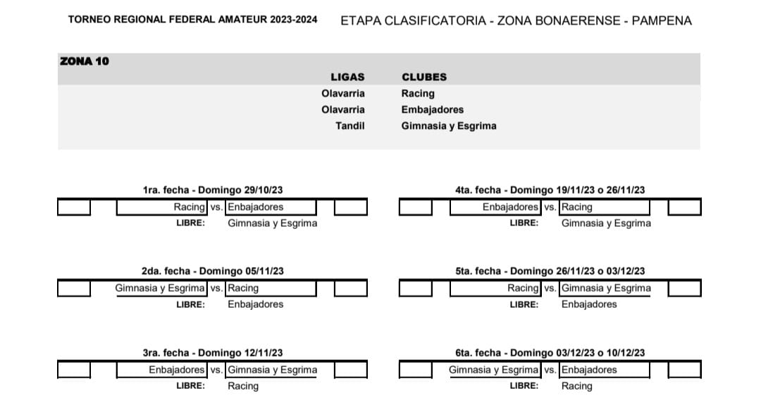 Velense, Sarmiento de Ayacucho y Atlético de Ayacucho, están en una zona de 4 equipos, mientras que Gimnasia y Esgrima participará en una zona de tres.