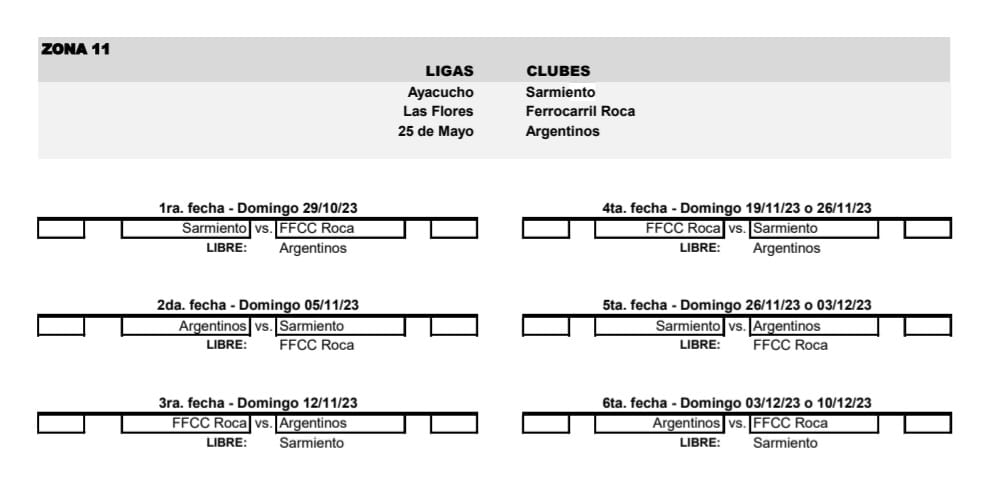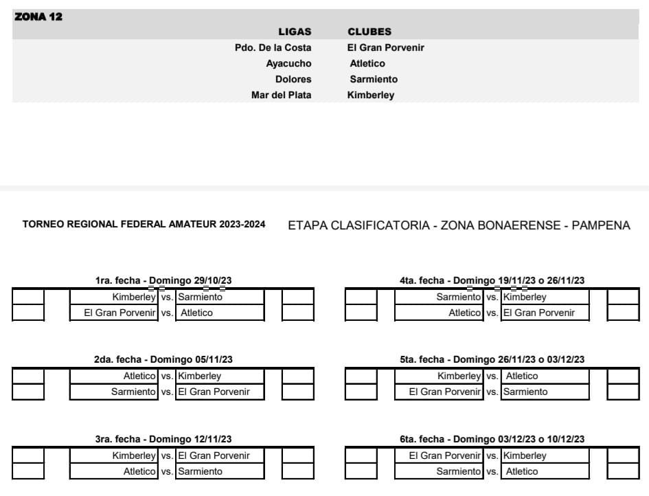 Así quedaron las zonas, con las localías y las fechas de cada encuentro;