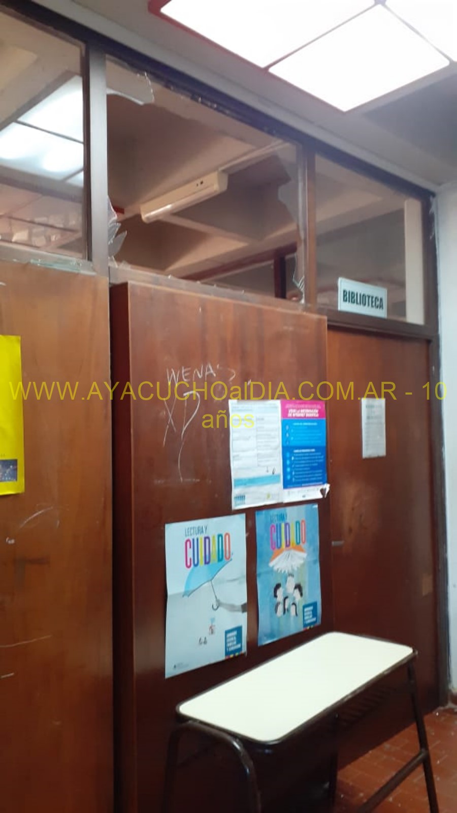 Al llegar esta mañana a la escuela, las autoridades y personal encontraron nuevos destrozos y rotura de vidrios en la parte superior, esta vez en la Biblioteca y lo que es la secretaría del Instituto a la noche.