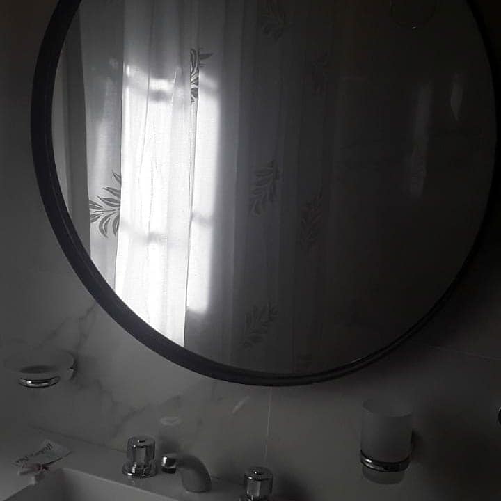 Porcelanato Ravenna pulido de Cerro Negro+ espejos redondo de Herdanza Deco;