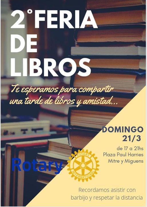 Este domingo 21, el Rotary Club de Ayacucho realizará la 2ª Feria de Libros, en la Plaza Paul Harries, en Miguens y Mitre, de 17 a 21 horas.