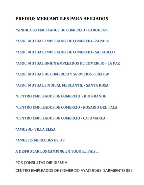 Como un servicio más del Centro Empleados de Comercio de nuestra ciudad, se recuerda los lugares en los que se cuenta con beneficios en todo el país, para los Empleados de Comercio;