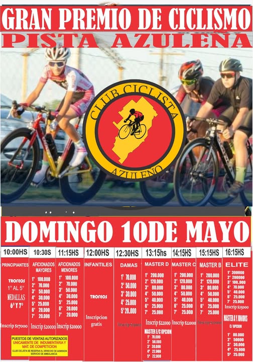 El domingo 10 de Mayo habrá ciclismo en Azul. Te espera en las clásicas del centro, para vivir otro hermoso festival de ciclismo y disfrutar de la pista, con un completo servicio de cantina…