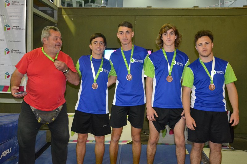 GIMNASIA DEPORTIVA MASCULINO SUB 18: Medalla de Broce para Justo Pintos, Santiago Taborda, Lucas Egea y Gustavo Santilli. DT: José Pintos.