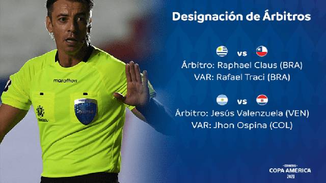 Para Uruguay-Chile, en tanto, habrá terna brasileña. Raphael Claus será el árbitro principal, mientras que Rafael Traci estará en el VAR.