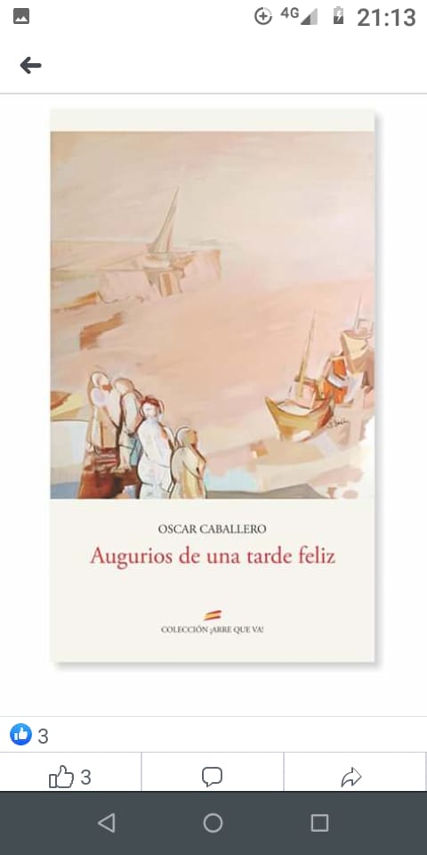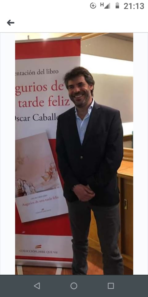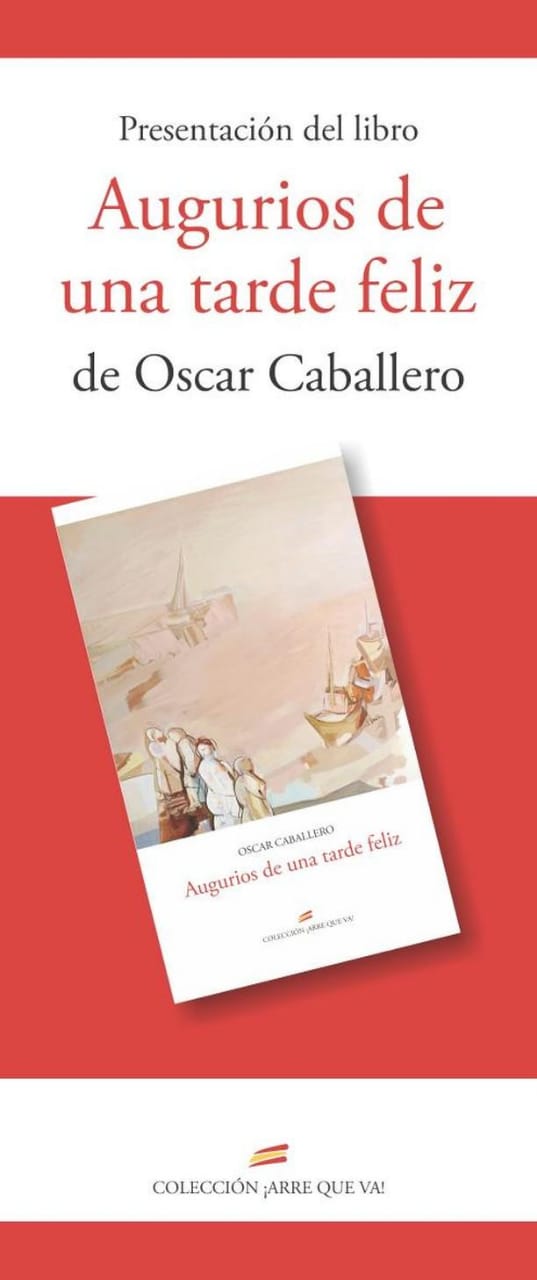 Augurios de una tarde feliz (Colección ¡Arre que va!, 2019) es la primera novela de Oscar Caballero. Un retrato de época del puerto local debajo de la historia de un chico de siete años que espera el regreso de su papá embarcado en el Pionero desde hace seis días. El fútbol y el humor ayudan a sobrellevar el drama de la historia narrada.