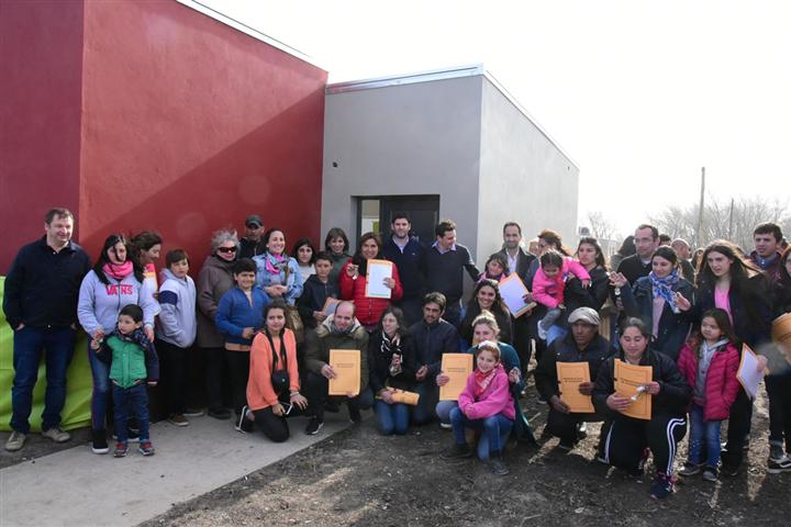 En primer término se procedió a la firma de las actas y a una pequeña charla entre los nuevos propietarios de los 20 hogares con representantes del Municipio y del Instituto de la Vivienda de la Provincia de Buenos Aires. Se trata de viviendas de algo más de 55m2, con una cocina comedor, dos dormitorios y baño, estando equipadas con todos los servicios.