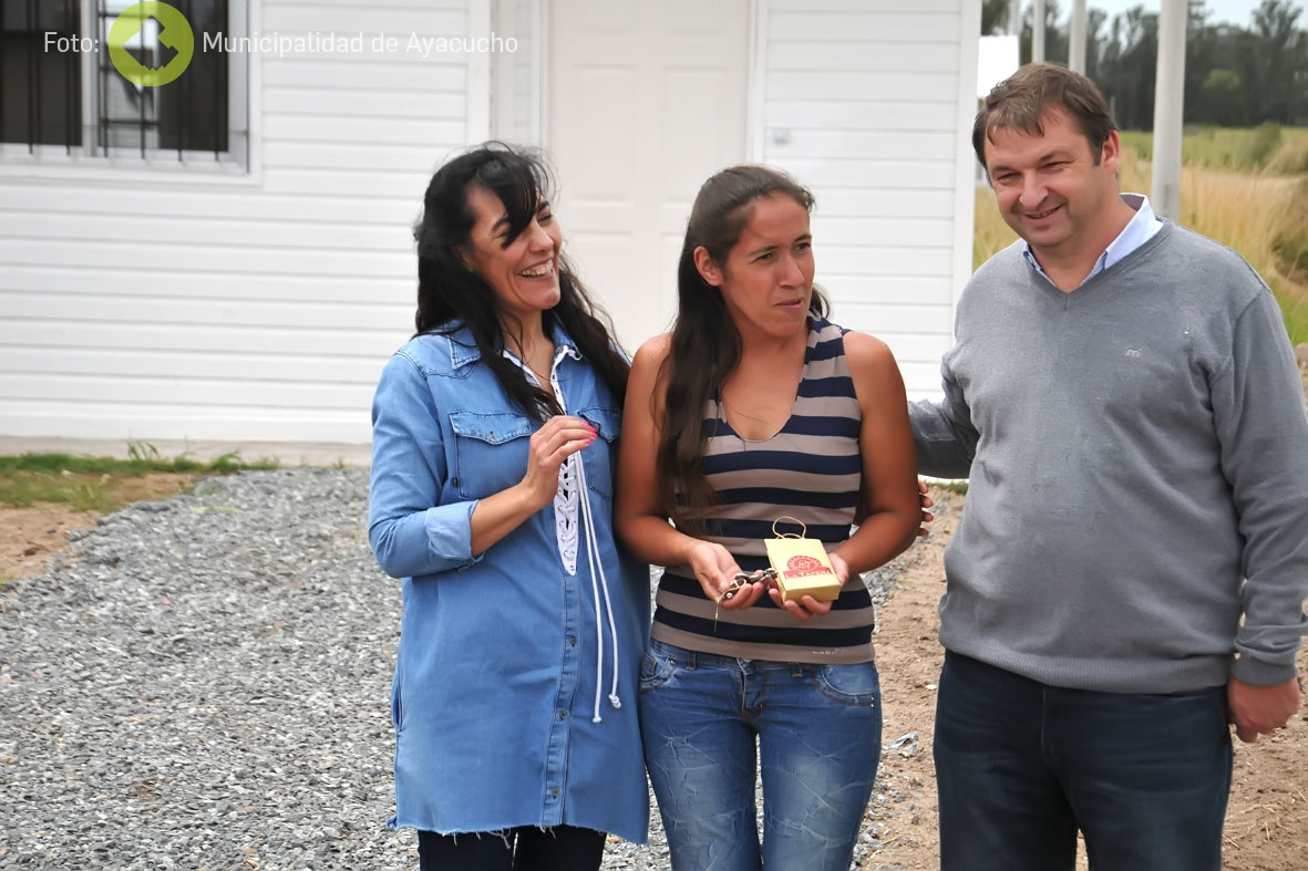 Este Martes 19, dos familias ayacuchenses recibieron por la mañana sus sendas viviendas a estrenar. Como parte de un programa provincial de viviendas sociales pero con la sumatoria por parte del Municipio de aportarle mayores comodidades, fueron entregadas estas dos casas ubicadas en calles Martín Fierro y Moreno, en pleno barrio El Estadio.
