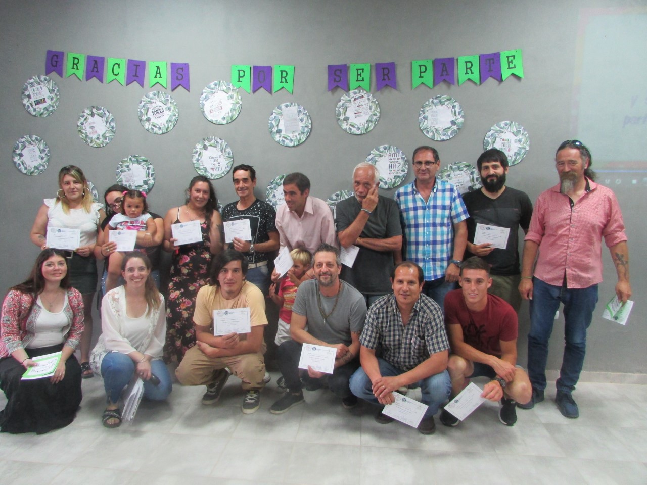 Seguidamente se hicieron entrega de los certificados a los egresados de los siguientes cursos y capacitaciones completados a lo largo del 2019: Electricidad; Montador Eléctrico (se dictó en coordinación con la Escuela Técnica Nº 1); Computación Nivel I y Nivel II; Crochet; Costura Inicial (en articulación con el Hogar Agrícola).