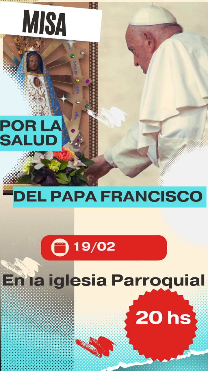 Si bien hubo una convocatoria para miércoles 19 de Febrero a las 20, en la Iglesia Parroquial, todos podemos seguir orando por el Santo Padre.