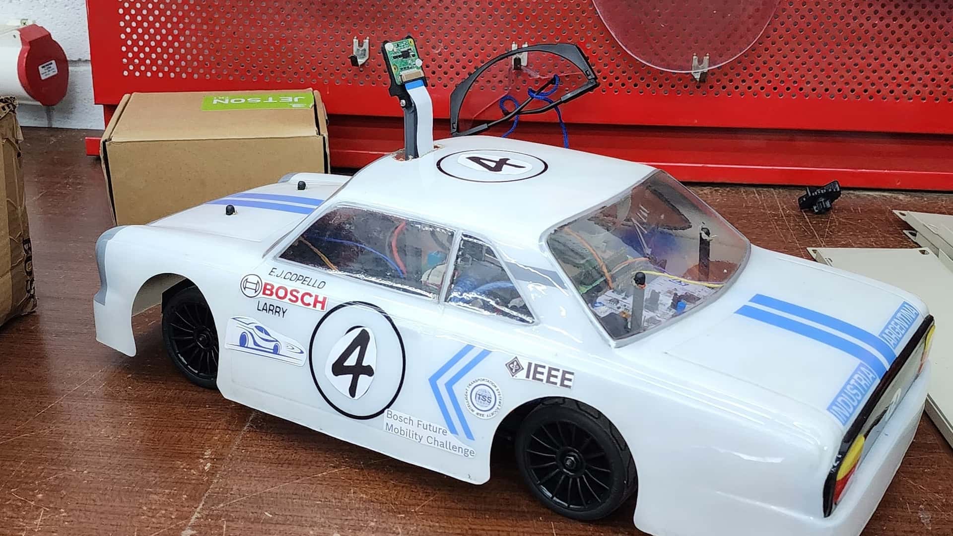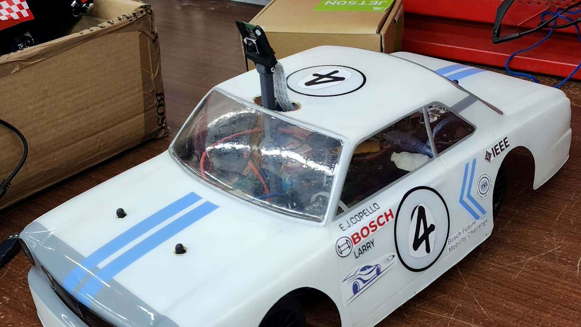 En la competencia, los alumnos de la Universidad Austral deben lograr mejorar el proceso de las imágenes y la eficiencia de los algoritmos, sobre la base del auto entregado por Bosch, con la misma tecnología para todos los participantes. Ricardo López Bonaguro explicó que el auto que recibieron ya estaba pre-ensamblado: “Está compuesto de varias partes, pero lo más importante es la computadora que contiene, que se conecta a una red de internet. Además, lleva una cámara, que toma toda la información externa (vía, señales, carriles) y es la que se encarga de hacer los cálculos necesarios para mantener la dirección y reaccionar a las señales que se va encontrando”.