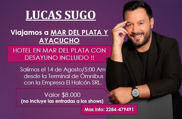 Luego de saludarnos e intercambiar los primeros conceptos, señala; «Gracias por esta oportunidad, estamos muy contentos de poder traer semejante artista acá a esta ciudad. Lucas y su representante me pidieron que elija una ciudad linda cerca de Mar del Plata para presentarse, y en lo primero que pensé fue en Ayacucho. Si bien no conocía la ciudad, me pareció interesante, así como el recibimiento de la gente que cuando camino en estas calles y le pregunto, se muestran entusiasmado con esta posibilidad».