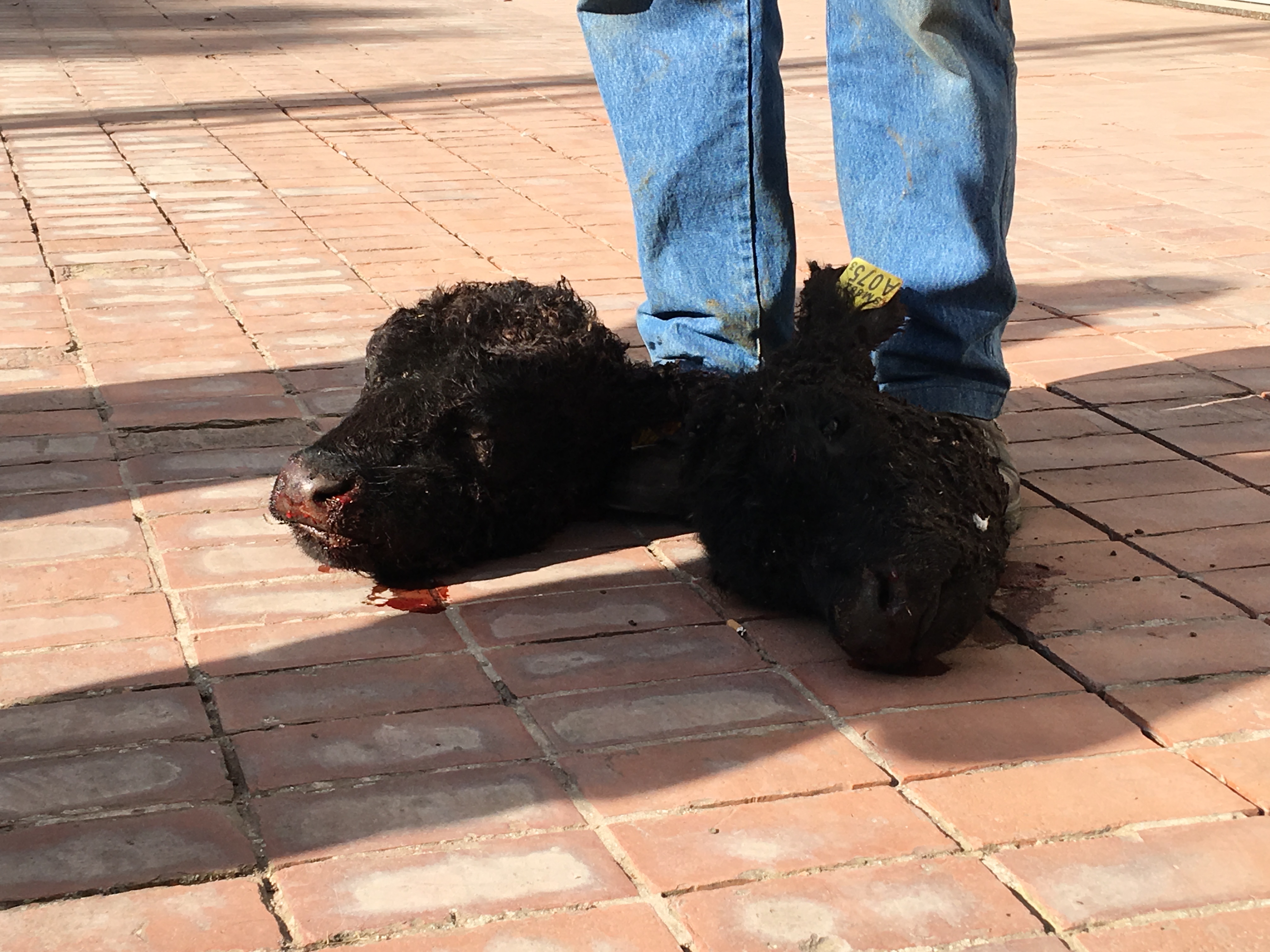 En la mañana de este Miércoles 23, el productor rural Marcelo Gianoli se presentó en la Explanada Municipal con dos cabezas de terneros de su propiedad y que le faenaron en las últimas horas.