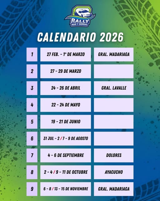 El calendario 2026 de la categoría tendrá nueve fechas que se distribuirán desde el 27 de Febrero próximo, con la apertura del año deportivo en General Madariaga, hasta el mes de noviembre, donde se cerrará la temporada con otra edición del rally “Pagos del Tuyú”.