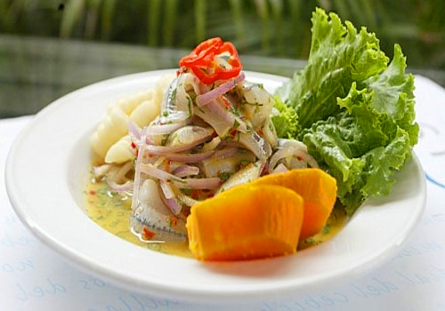 12 pejerreyes, 5 o 6 gramos de azúcar, 2 dientes de ajo, 1 batata, 1 cebolla morada, 1 choclo, 1 morrón o 1 ají limo, 1 cucharada de rocoto, 2 gramos de anís, 5 limones, 2 ramitas de perejil y 4 hojas de lechuga. Sal y pimienta a gusto.