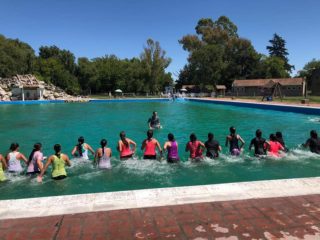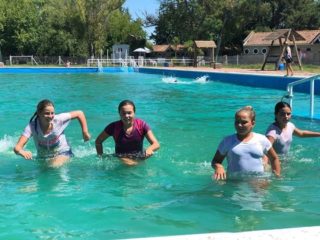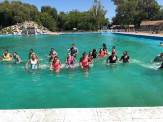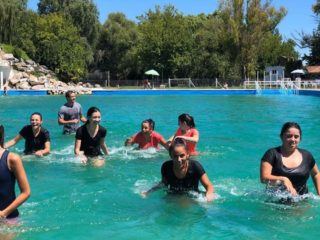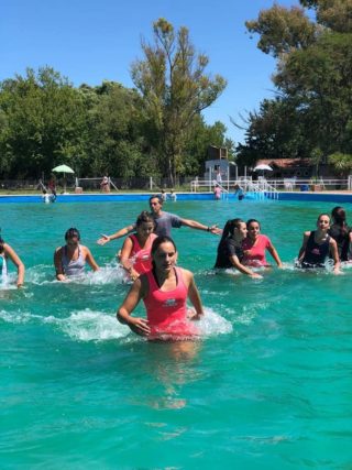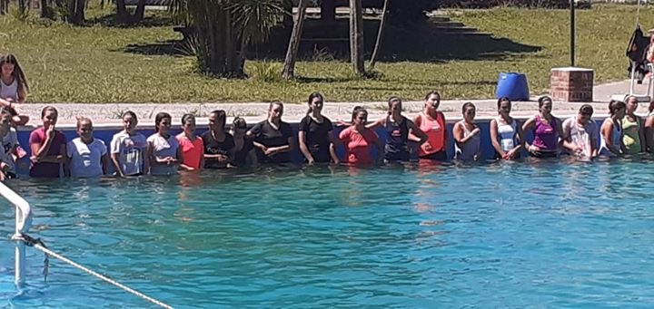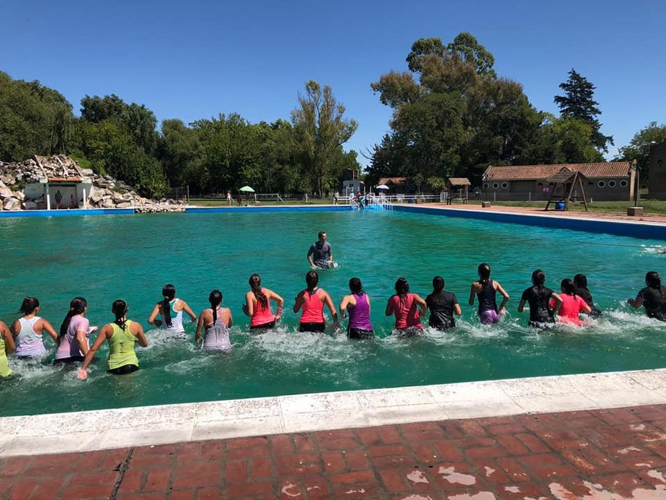 Aprovechando la alta temperatura de este Jueves y que desde hace días comenzaron la pretemporada, las jugadoras de Hockey del Tiro Federal hicieron trabajo de fuerza en el piletón de Independiente, a cargo del profesor Jeremías Ceverio.