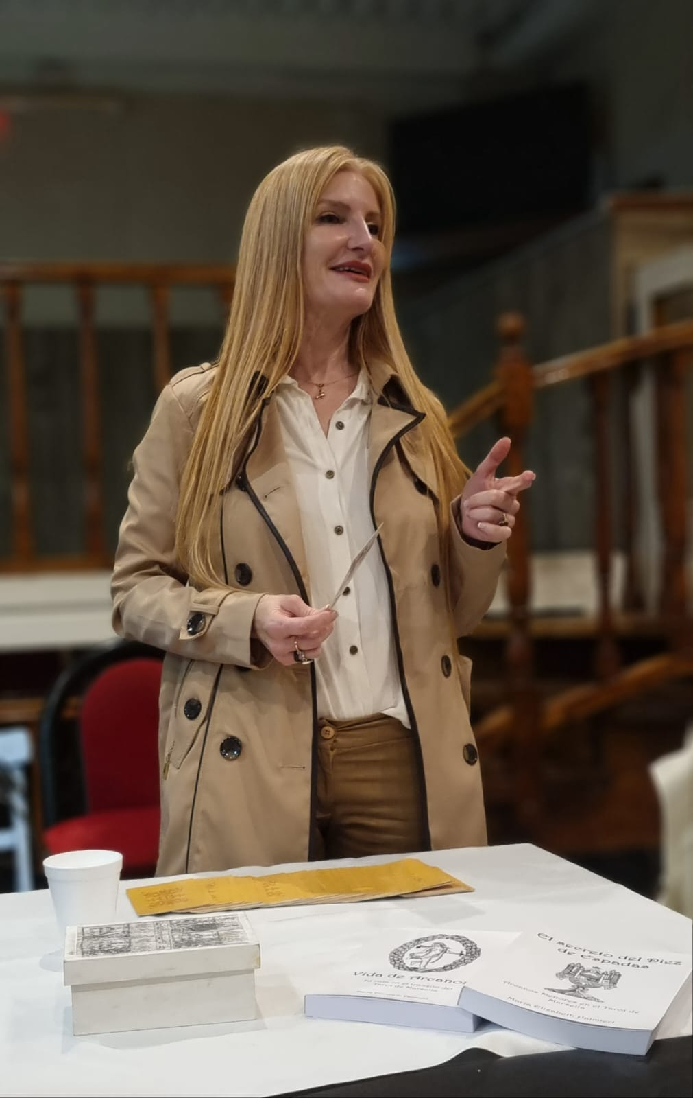 Consultada por nuestro portal, indicó; «Gracias. 2 libros salieron y en un mes el tercero. Este año son 5. Presente los dos primeros en la feria del libro de Bs As. El primero, es sobre los arcanos mayores del Tarot de Marsella. Se llama vida de arcanos. El segundo es sobre los arcanos menores y se llama el secreto del diez de espadas…»