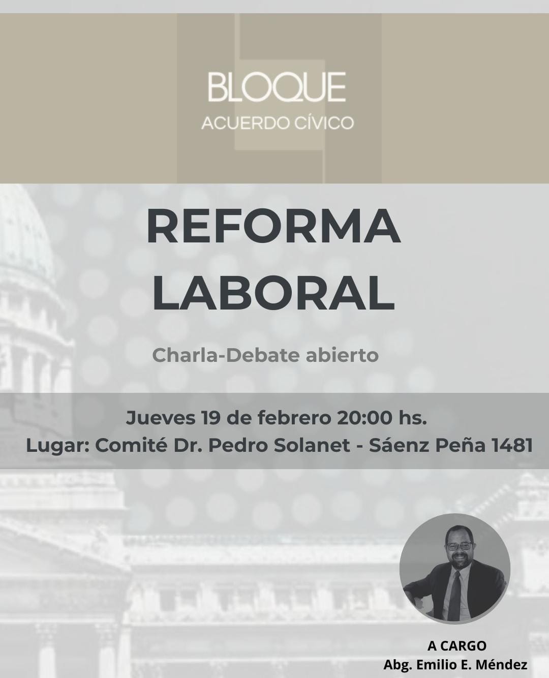 Desde el Bloque Acuerdo Cívico, los invitamos por este medio hoy jueves 19 a la charla que se realizará en el comité a las 20: