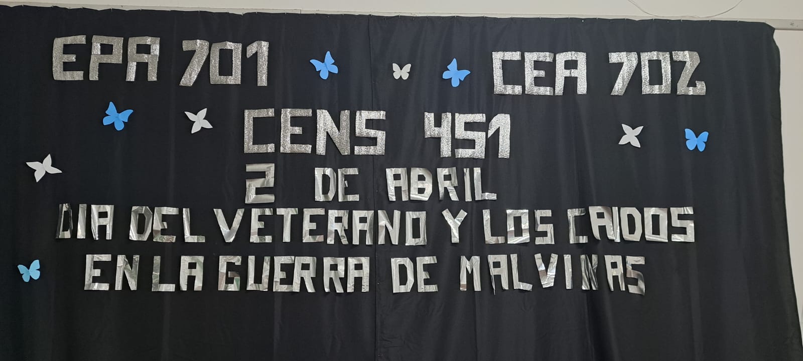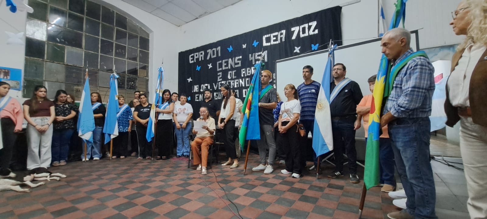 Este miércoles se realizó el Acto Oficial del Veterano de Guerra y Caídos en Malvinas. Fueeste miércoles 1-4 a las 19, en la sede de la EP 3, donde funciona la entidad organizadora, el CENS 451. También participaron el EPA 701 y el CEA Nro 702.
