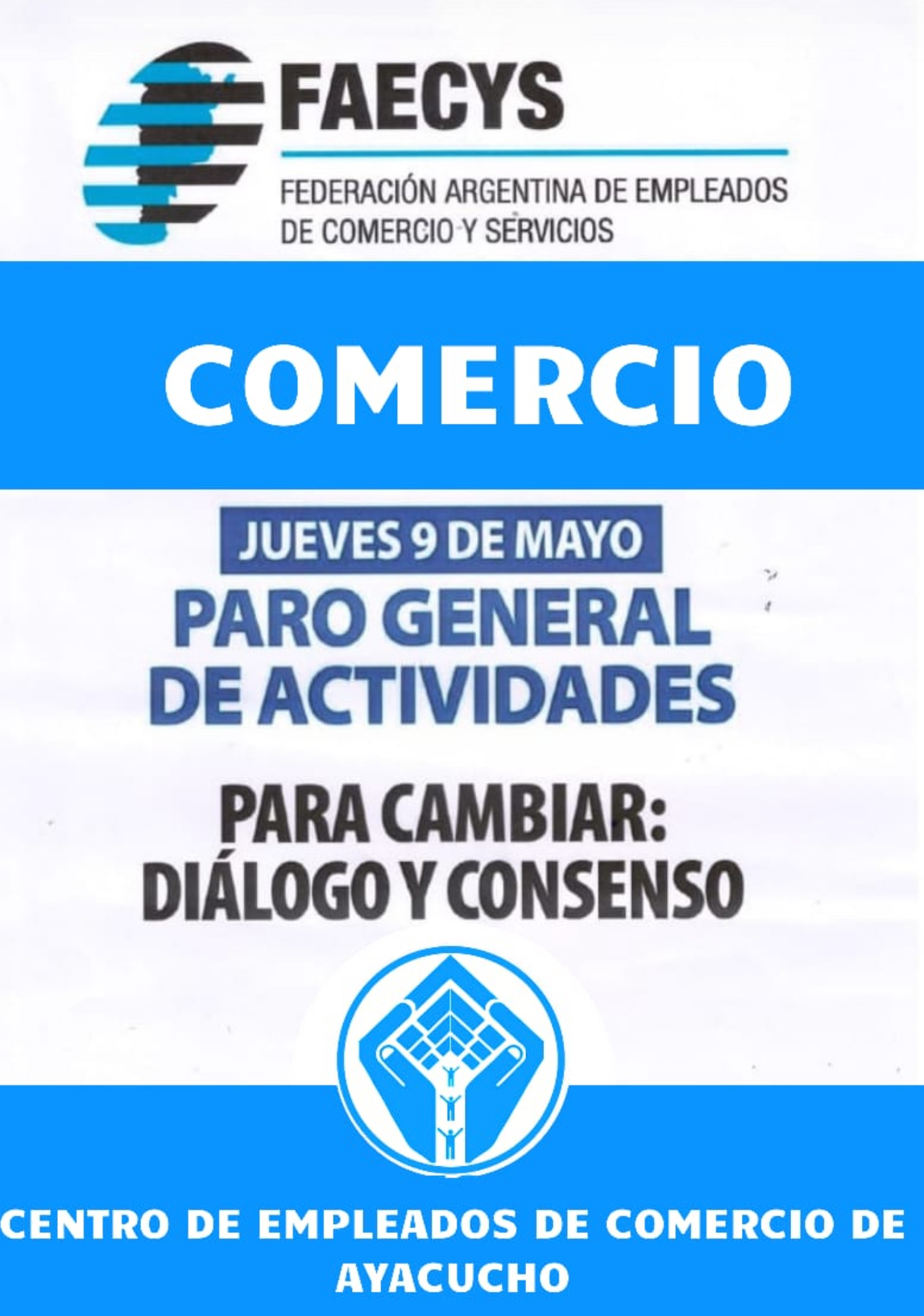Desde la Federación Argentina de Empleados de Comercio y Servicios (FAECYS) representada en Ayacucho por el Centro de Empleados de Comercio a cargo de Osvaldo Zetola, llama a los empleados de comercio a tomar partida y adherirse al Paro Nacional promovido por la CGT y distintas entidades gremiales, en contra de la Ley de Bases y el DNU que busca lograr el presidente Javier Milei.