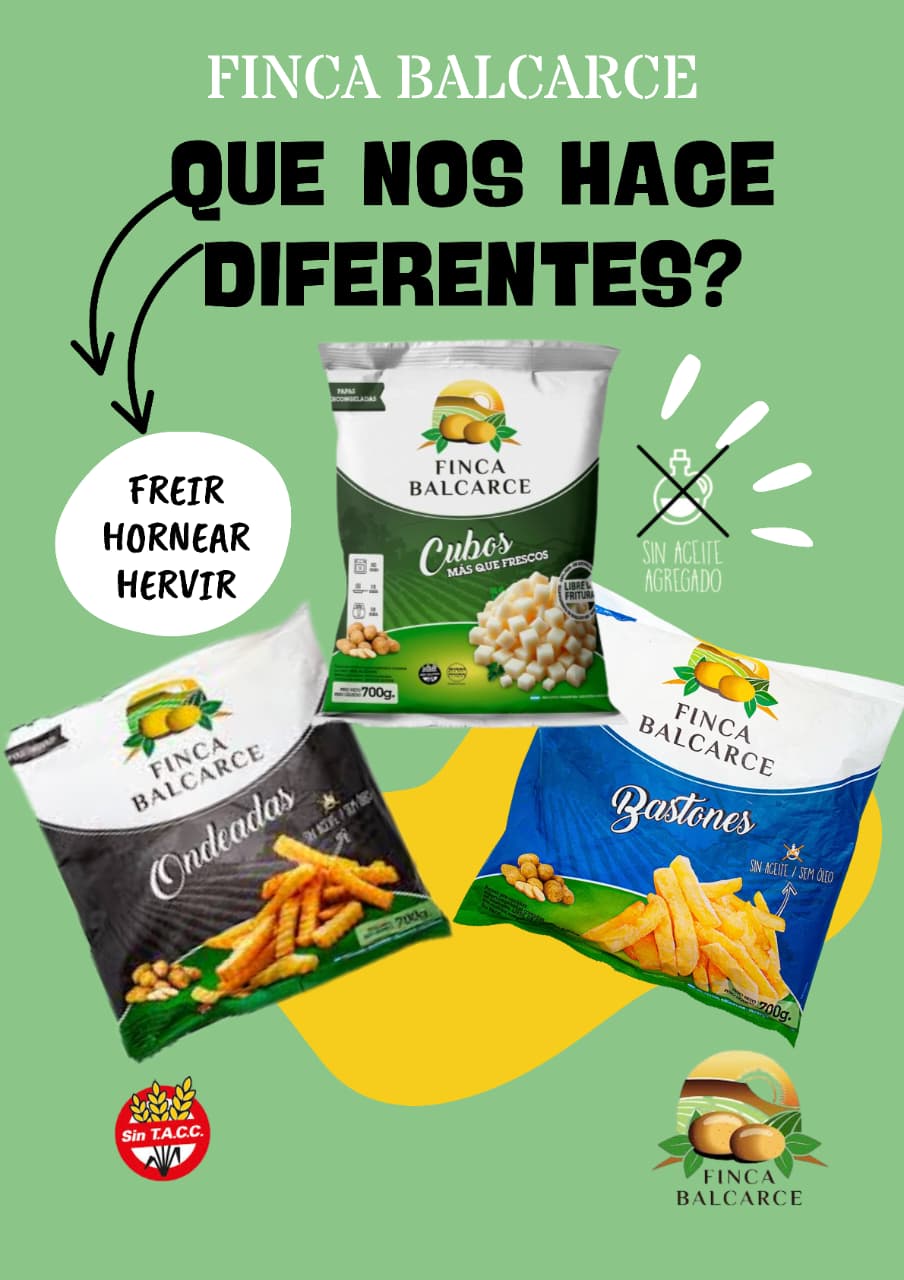 Papas congeladas en formato Bastón y cubo apta celiacos y para todo tipo de coccion ya que no cuentan con prefritura.