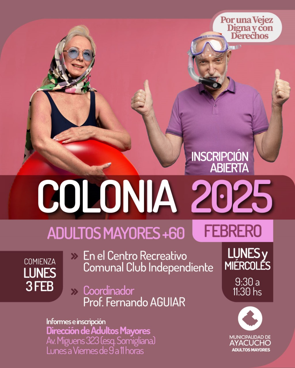 El área de Adultos Mayores lanzó una interesante propuesta para este 2025 consistente en una Colonia, para la cual ya poseen la inscripción abierta a todos los que se quieran sumar. La misma estará comenzando el lunes 3 de Febrero en el Centro Recreativo Comunal del Club Independiente a cargo del Prof. Fernando Aguiar.