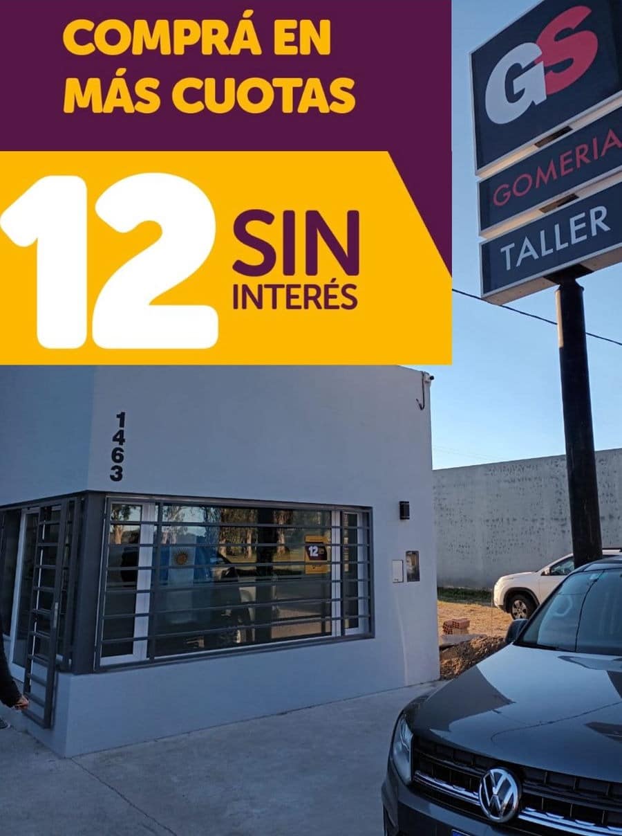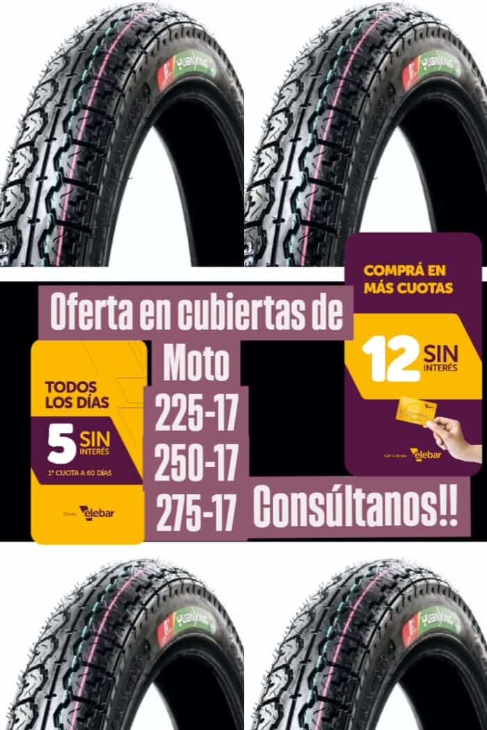 En Gomería Sarmiento ubicada en Colectora Hernán Naveyra 1463, paralelo a la ruta 50…Tiene una promo increíble con tarjeta ELEBAR, hasta 12 cuotas sin interés o todos los días en 5 cuotas y la primera a los 60 días: