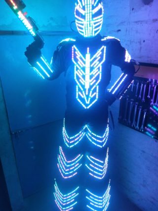 Como en casa, rodeado de robótica. Así se presentó el Robots Laser de La Cascada Eventos en el cierre del Torneo Internacional de Robótica organizado por la Escuela Técnica. Y, como era de esperar, causó sensación entre todos los presentes, por su tamaño, por su accionar, por su llamativa forma y despliegue. Esta gran propuesta del Robot fue convocada por la agrupación Enigma que desarrolló en el cierre un cuadro coreográfico y que tuvo esta cereza del postre.
