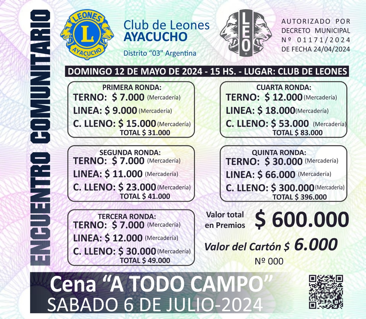 Bingo en el Club de Leones. Si querés adquirir tu cartón podés retirarlo en la sede de 9:00 a 11:00 hs y de 17:00 a 19:00 hs.