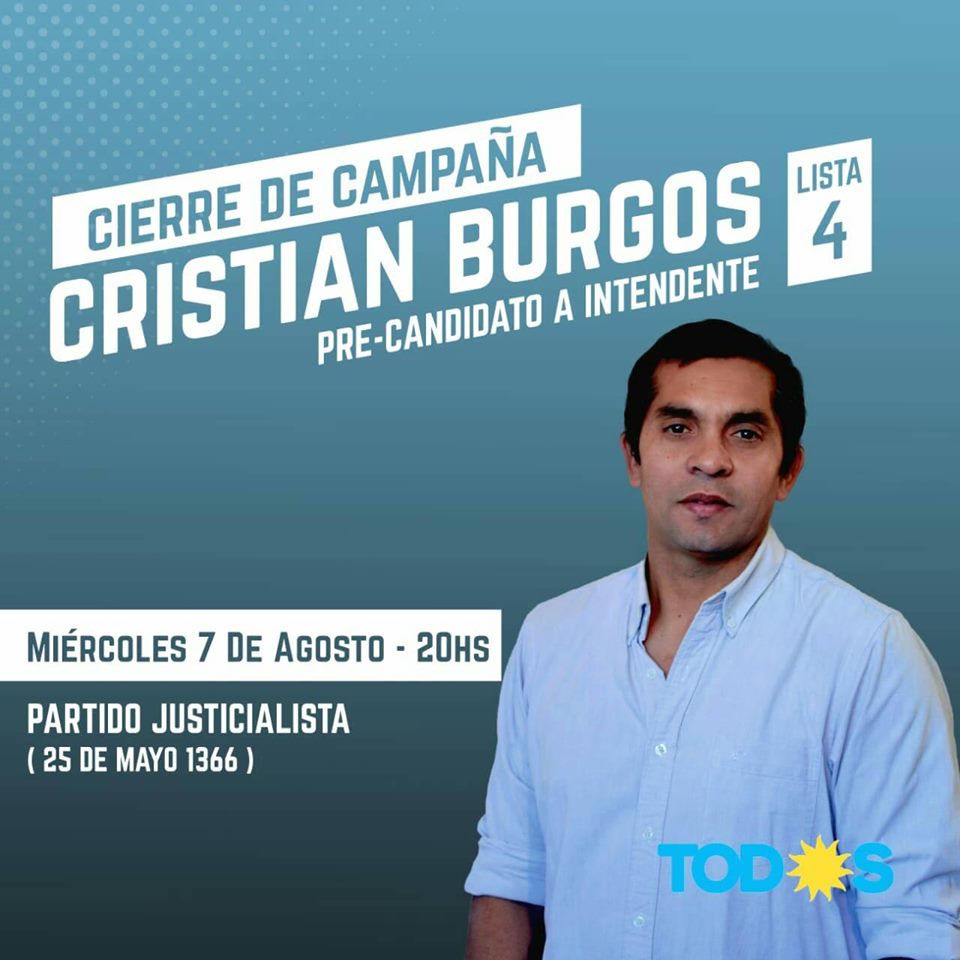 Este miércoles 7, como se venía anunciando se produjo el cierre de campaña de la lista que encabeza el «Negro» Burgos que es la lista 4 del PJ, al que se le han sumado sectores independientes, de izquierda y otros. Debido a la gran cantidad de gente que se hizo presente, se debió abrir las puertas al patio, para otorgar mayor comodidad.