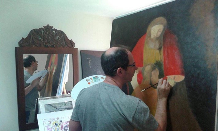Él se describe como un “Artista autodidacta”, que comenzó a pintar en el año 2008, y que dada su pasión por el arte como también por conservar el acervo histórico, que quede de generación en generación y valorando a nuestros personajes que nos identifican en la cultura, es que creó la Fundación “Mercedes Sosa para la Cultura”.
