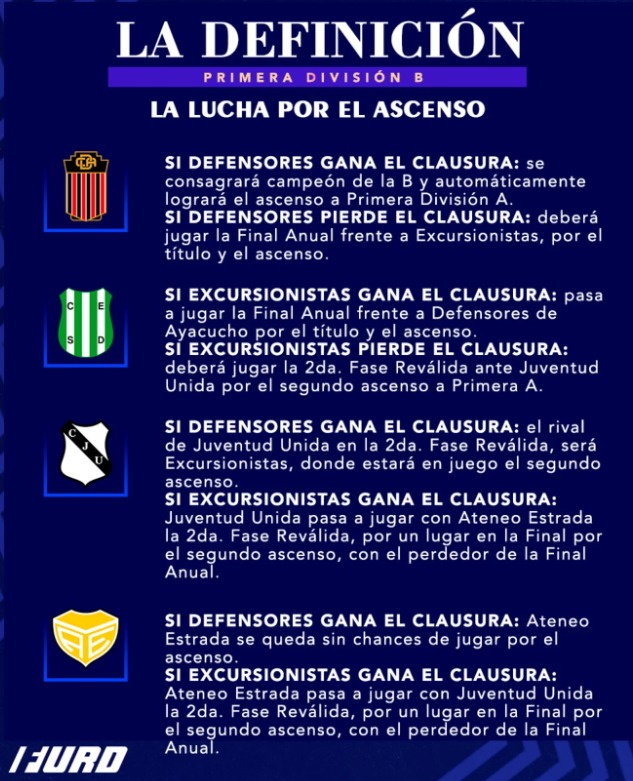 En caso de ganar, ascenderá a la A. Si perdiera, ambos equipos jugarían una final ida y vuelta (en el San Martín ambos partidos) en los próximos días.