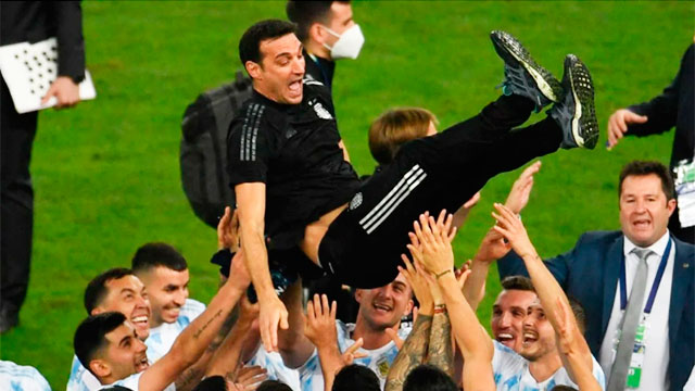 El DT de Argentina, Lionel Scaloni, aseguró que «cuando todos tiran para adelante es difícil que al equipo no le vaya bien», tras el título obtenido esta noche en la Copa América con la victoria en la final sobre Brasil, 1 a 0 en el legendario estadio Maracaná.