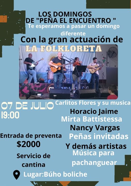 Este domingo 7 de Julio – Gran Peña de «El Encuentro» en el boliche Búho 6 julio, 2024 Pablo Tusq destacados, Locales, locales DIA 0 Los Esperamos!!!! Domingo 7 de Julio Gran Peña!!! X